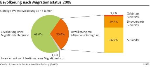 Het gaat in het referendumvoorstel om Ausländer. Onder "Ausländer" vallen volgens mij ook in Zwitserland geboren niet-Zwitsers. Je plaatje geeft bij "Bevölkerung mit Migrationshintergrund 3 categorieën:quote:Op donderdag 11 november 2010 20:19 schreef Hyperdude het volgende: