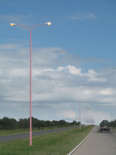 Vreselijk, een horizontale roze lantaarnpaal met rouchjes.quote: