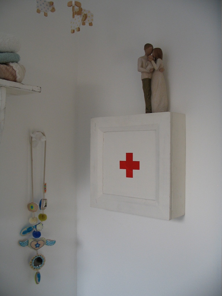 Ik hoop op de vrijmarkt een letterbak te scoren, kleine schatten voor erin en ik zoek iets van blikjes of prentjes. Voor onze kamer en eventueel voor Elin wil ik zo'n soort houten medicijnkastje dat hier wel eens voorbij kwam, ik zeg het vast foutmaar die vond ik tof.