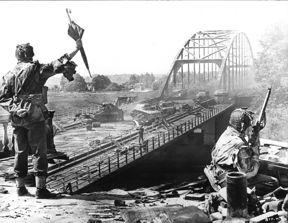 Die foto is uit de film bridge to far, de man (acteur) met de paraplu ken ik ook ,maar naam is me ontschoten.