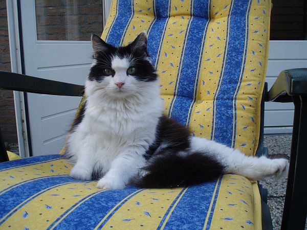 Ik ben Plumeautje en ik ben gehandicapt, dus zit graag met een gestrekt pootje