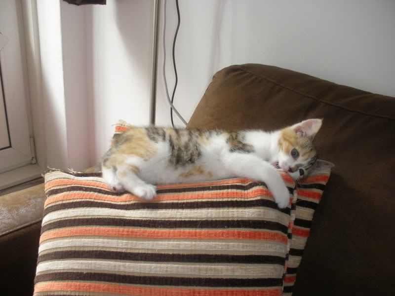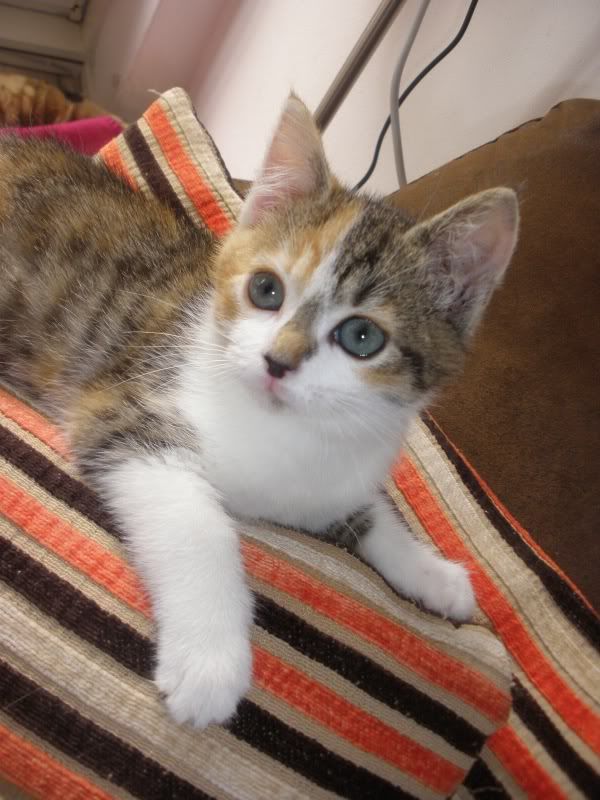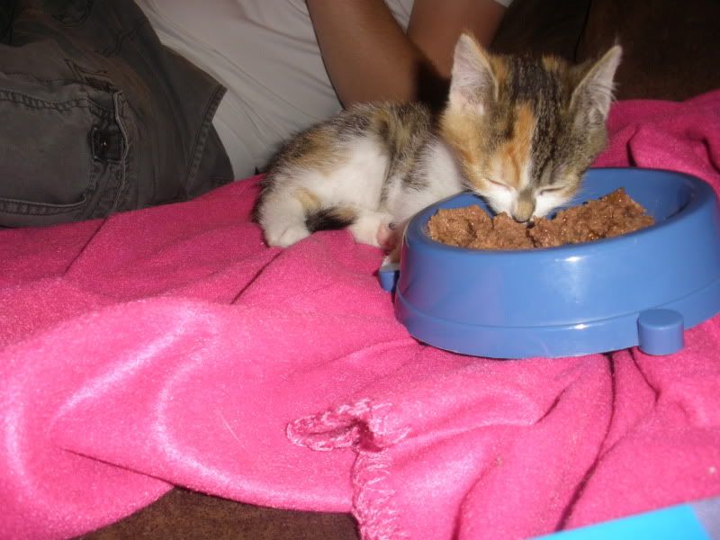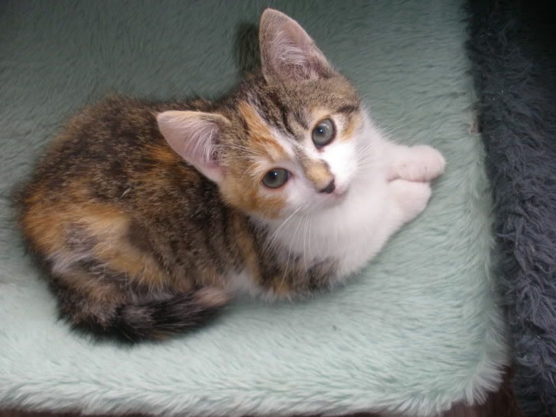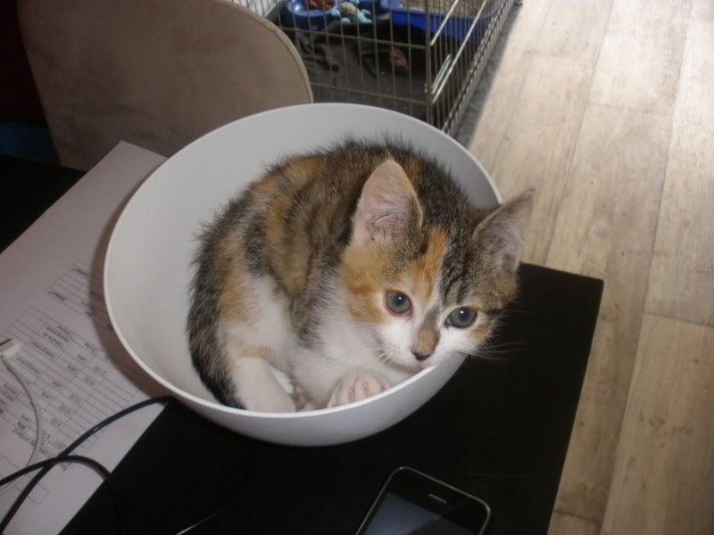 Ja, Vichy is echt een schatje, wel bang toen ze vanmorgen in haar hokje werd gezet, maar toen ik eenmaal met haar bezig ging heel sociaal. Eigenlijk moet ze wel naar een pleeggezin omdat ze zo jong is, maar omdat ze wel goed eet en drinkt, in tegenstelling tot Andy, heeft het volgens mij niet zo'n haast... Ze is zó snoepig ![]() Volgens mij heb je ook heel veel kittens opgevangen al, echt super! Ik zou het zelf ook graag willen doen, maar mijn vader is zo ongelooflijk allergisch dat het helaas niet gaat. Ooit, als ik op mezelf woon. | |