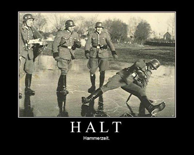 Mijn Duitse helm komt al door de knopen door, wachten tot iemand het ziet, ik kan de spanning niet meer aan... boh gek ik voel mijn zaad al opborrelen.
