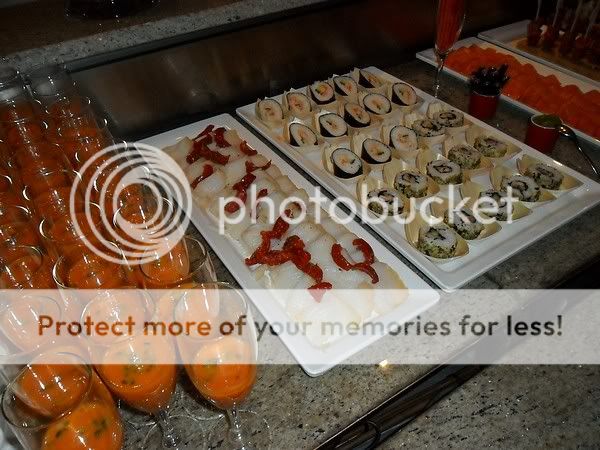 En spiesjes met daarop blokjes rauwe tonijn (omnomnommmmmmmm) en kleine pipetjes met sojasaus enzo. Het was allemaal goddelijk.