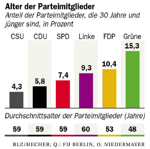 Leuk staatje van de mate waarop jongeren zich aangetrokken voelen tot de Duitse partijen om lid te worden. Zo te zien behoorlijke vergrijzing daar.