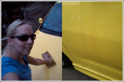 Ehm... ja. Eén keer de binnenkant en één keer de buitenkant gedaan:quote:- Iets vaker de auto schoonmaken van binnen en buiten.