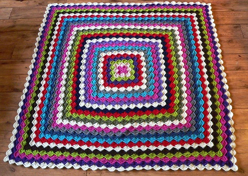 En mijn andere project is een granny sqaure regenboog deken voor op de bank.
