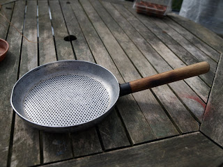 Die pan had iedereen vroeger. Was een zwarte pan met putjes.