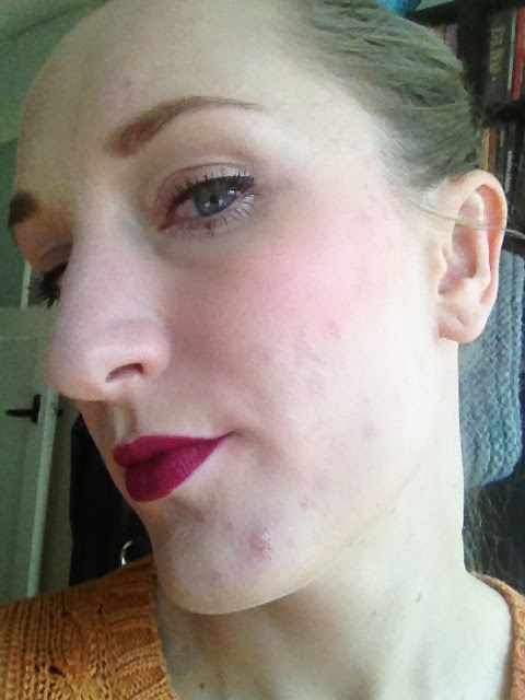 Hij is nog iets paarser in het echt en niet matte maar satin, maar ik krijg 'm er niet fatsoenlijker op. Tevens excuses voor de dikke puist.