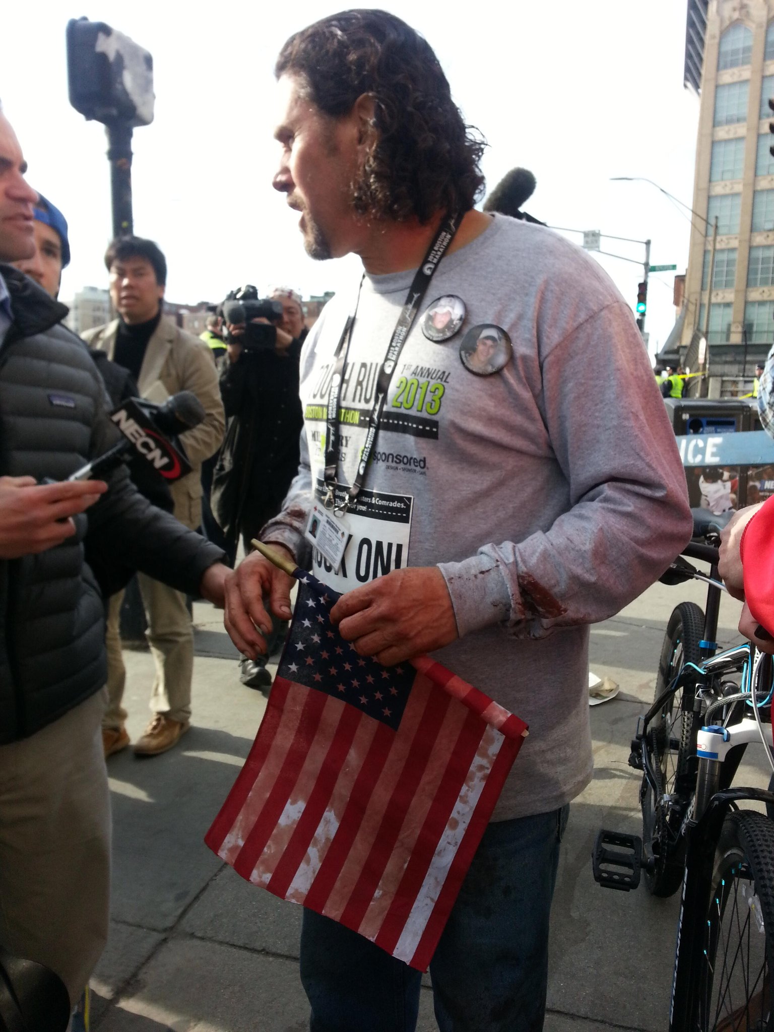 Op beelden van een van de explosies is te zien hoe een van de deelnemers neervalt. De explosie vindt plaats achter een rij dranghekken. Sommige lopers rennen in paniek weg. Mensen in gele hesjes trekken de hekken weg om slachtoffers achter de hekken te bereiken.