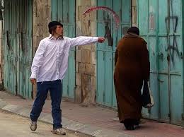 Joodse jongen wordt belachelijk gemaakt door Duitse soldaat.