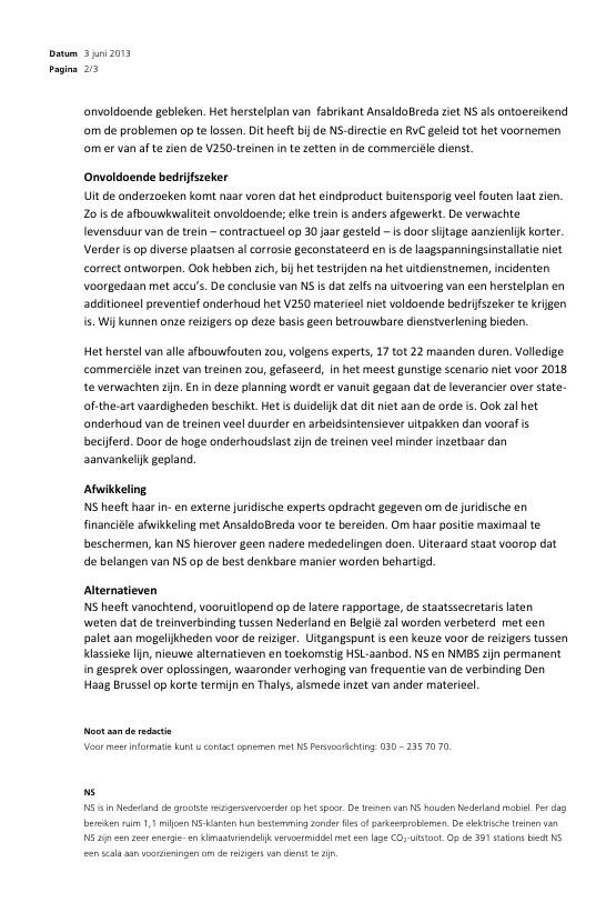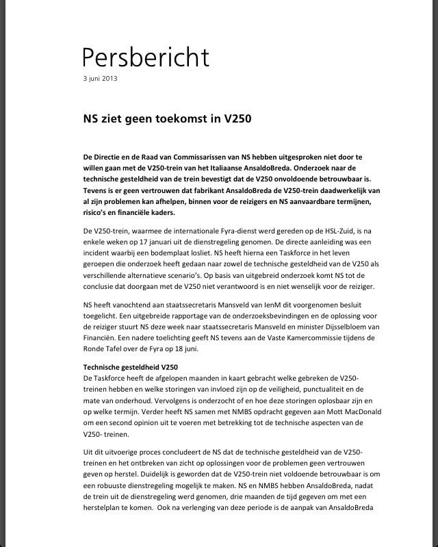 Voornemen NS Inzake Fyra V250
