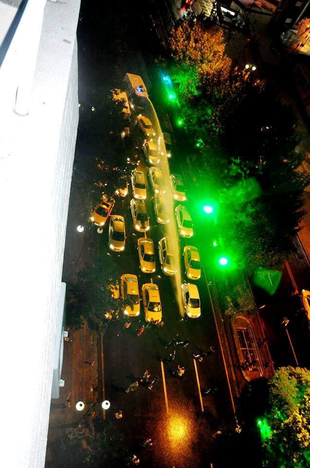 De politie heeft de wegen geblokkeerd zodat niemand uit Akkapi eruit of erin kan. Ze zouden lopen naar Atatürk Park, maar dat kon dus niet meer. Hierdoor zijn de mensen die in Atatürk Park waren naar Akkapi gelopen, en die zijn net aangekomen... 15.000 mensen hoorde ik