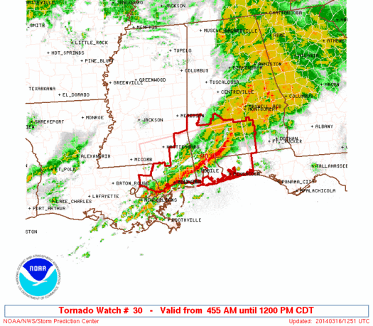 De eerste tornado waarschuwingen van vandaag zijn er ook al weer.Nu voor Carroll County en Granada MS en de andere west van Yazoo MS.