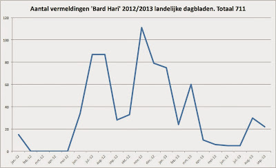 Voorlopig hoogtepunt in de berichtgeving is in november 2012 (111 vermeldingen) nadat Badr Hari werd gearresteerd (28 oktober) vanwege verdenking van de mishandeling van zakenman Koen Everink.quote:Op donderdag 10 oktober 2013 12:58 schreef Markeerstift het volgende:
