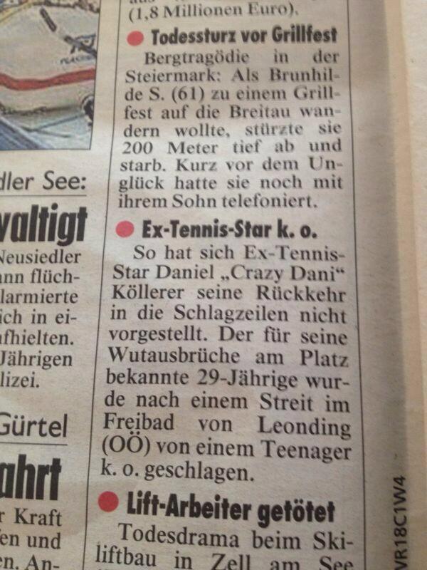 Nee, ik weet zeker van niet. Klizan stond volgens Livescore en Flashscore met 4-2 voor in de derde set. Ik loop een kwartier later weg, zet de tv aan en kijk op Teletext wat het uiteindelijk is geworden: 6-0. Weet niet wat ze aan het doen waren dan.. heel vreemd. En geen grap Norrage