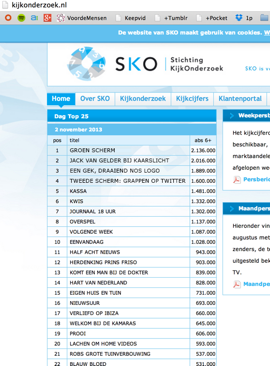 Dat zijn de kijkcijfers van zaterdag. Studio Voetbal is op zondag. Volgende keer beter.
