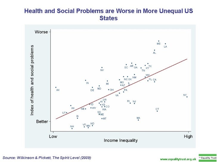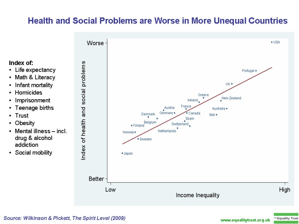 Die grafieken en al het andere onderzoek hierover laat heel duidelijk zien dat het niet gaat om het besteedbaar inkomen maar om de verdeling van het inkomen over de gehele bevolking.
