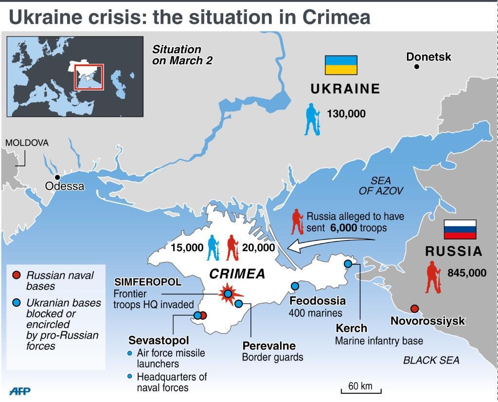 Oekraïne roept de hulp van de internationale gemeenschap in uit vrees voor een Russische invasie. Aanhangers van de regering en haar tegenstanders gaan in diverse steden in Oekraïne en in Moskou de straat op. Volgens de Verenigde Staten heeft Rusland meer dan zesduizend militairen naar de Krim gestuurd. De G7, de groep zeven rijkste landen op aarde, schorten voorbereidende gesprekken voor een G8-top in Rusland op.