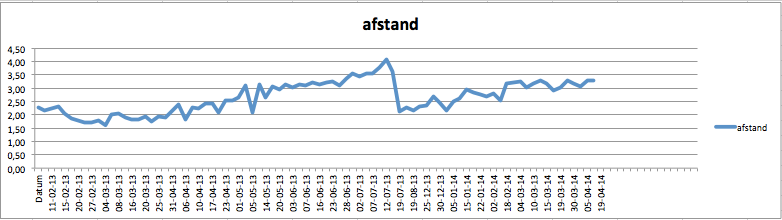 jaaa inderdaad. En er is wel progressie hoor. Dit is de afstand van al mijn trainingen sinds het begin, keurig bijgehouden in een spreadsheet.quote:Op zaterdag 19 april 2014 22:51 schreef Tyler-Girl het volgende: