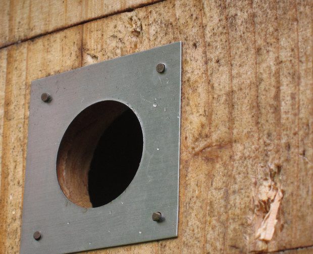 Spectaculaire beelden maar ook zorgwekkend. De specht heeft daadwerkelijk wat schade aangericht aan het kastje. Als hij lang genoeg doorzet kan hij binnen komen.