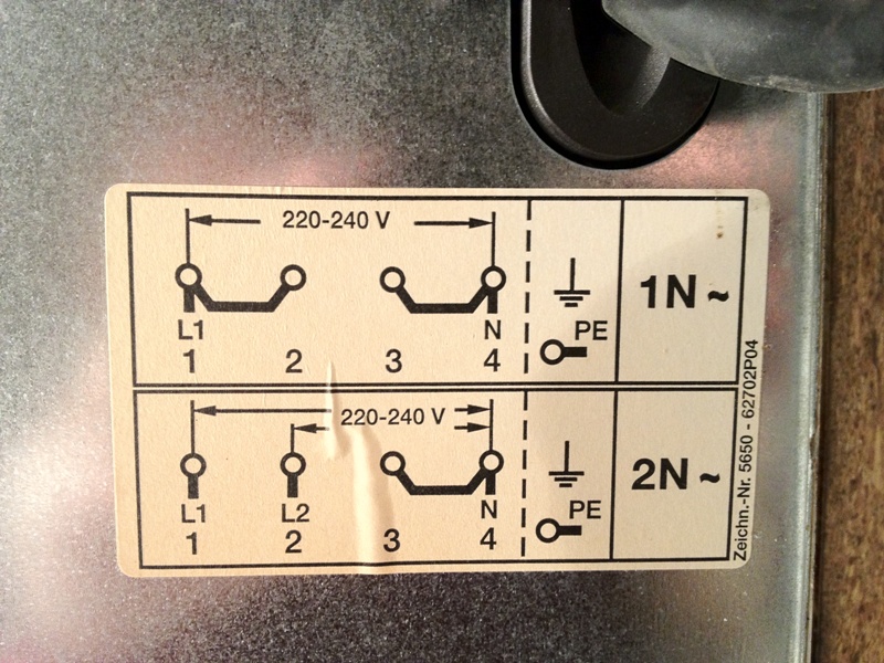 Je weet dat een inductieplaat inwendig galvanisch gescheiden is? Dus dat je dan of L1 + L2 + N moet aanleveren (waarbij je in de aansluiting van de plaat dus of een brugje moet zetten tussen N1 en N2, of dat brugje niet zet en de nul gewoon onder beide klemmen steekt?quote:Maar dan de 2 fase en 2 nul nog....