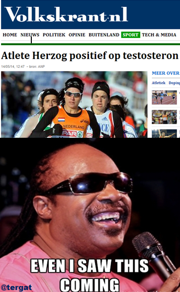 Testosteron : epitestosteron Herzog is bij een 'out-of-competition'-controle positief bevonden op grond van een overschrijding van de toegestane verhouding tussen testosteron en epitestosteron. In de column, die in het Engels is geschreven, zegt ze dat de testosteronwaardes bij haar altijd al aan de hoge kant zijn. Ook bij haar familieleden is dat volgens haar het geval. "Ik denk dat het genetisch bepaald is en wellicht is het één van de redenen waarom iedereen in mijn familie goed is in atletiek," schrijft de hardloopster.