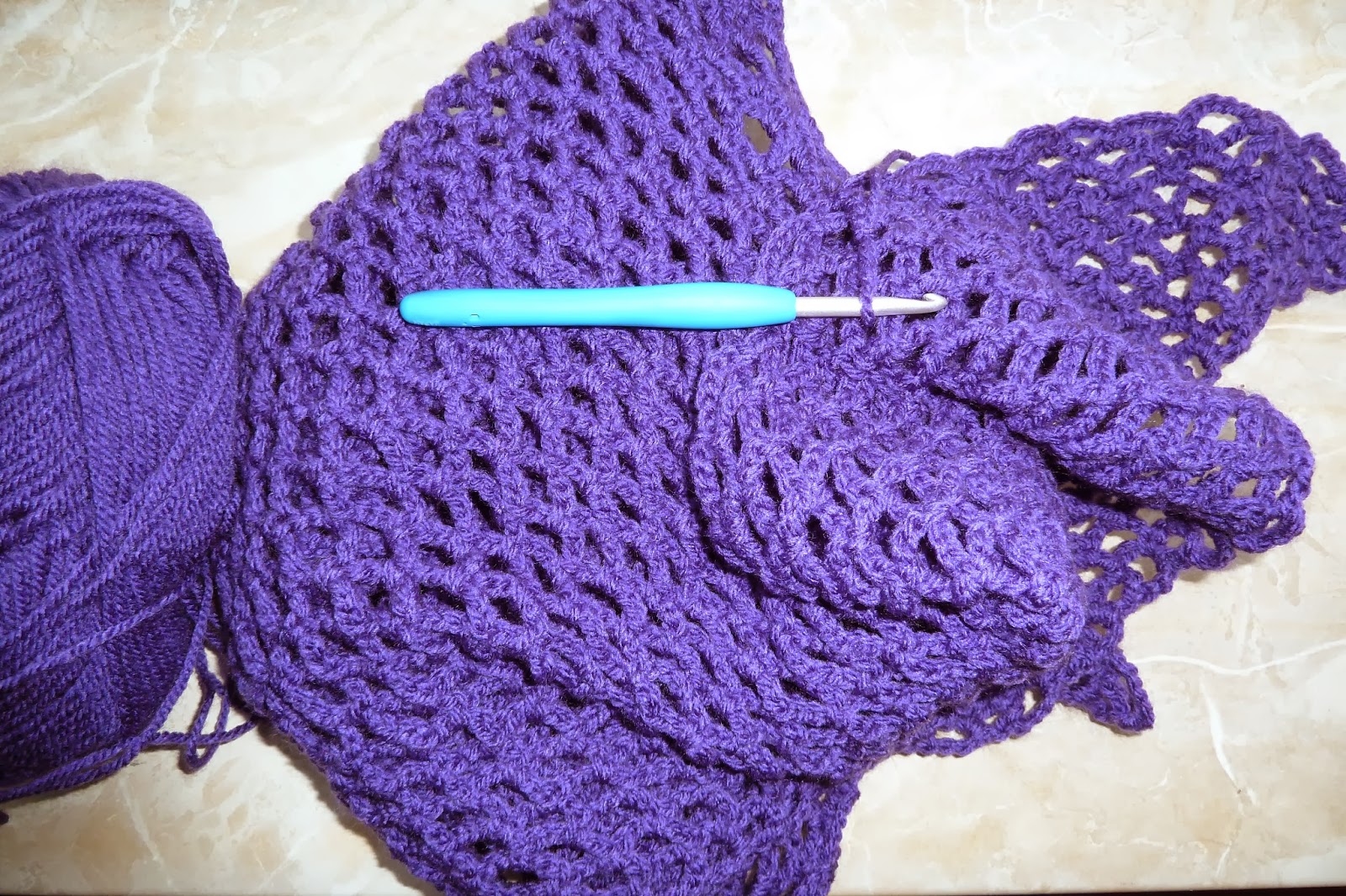 Mijn zojuist afgemaakte south bay sjaal. Nu patroon zoeken voor een ripple blanket voor zoonlief. ..