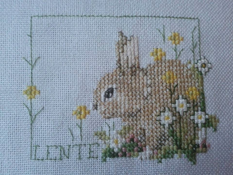 | Hoi :-) Ik lurk hier al een tijdje mee, wat worden er een leuke dingen gemaakt. Ik ben bezig met de vier jaargetijden van Marjolein Bastin, maar volgens mij doe ik het fout. Ik heb nooit eerder op katoen geborduurt maar volgens de beschrijving is een kruisje 3 bij 3 "gaatjes". Ik vind het konijntje nu zo klein, moeten de kruisjes niet groter? ![]() ![]() | |