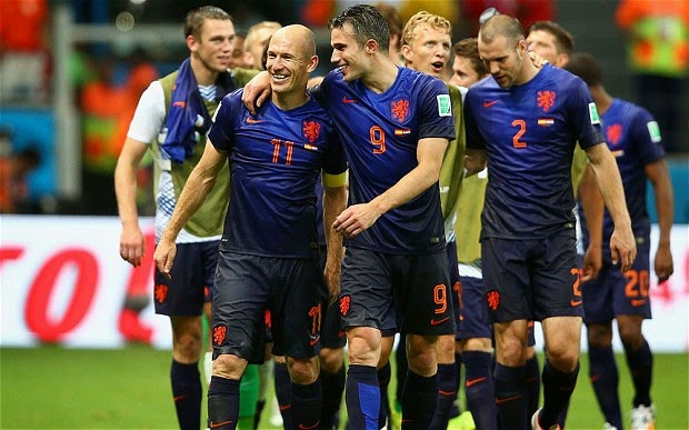 | Spanje-Nederland 1-2 met een doelpunt van Robben in de 93'ste minuut | |