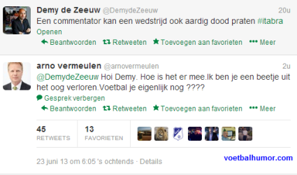 Niks mis met de voetbalgasten maar al dat RTL4 tuig zit toch helemaal niemand op te wachten? Er is toch niemand fan van John van den Heuvel of John Williams?quote:Op donderdag 12 juni 2014 00:11 schreef zeebeschuit het volgende: