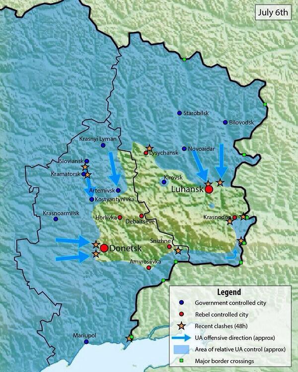 Karlovkatwitter:MiddleEast_BRK twitterde op zondag 06-07-2014 om 23:37:38#BREAKINGNEWS Ukraine's #NSDC says, the plan is to completely surround and besiege #Donetsk and #Luhansk cities, until the invaders give up. reageer retweet