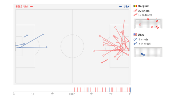 29 goalattempts voor België tegen 5 voor de VS
