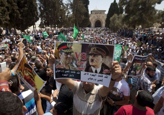 Ik zie een 1 afbeelding van Hamas aanhangers met god bless Hitler maar ook 1 dat Sisi vergeleken wordt met Hiter:quote:Op vrijdag 11 juli 2014 17:42 schreef firefly3 het volgende: