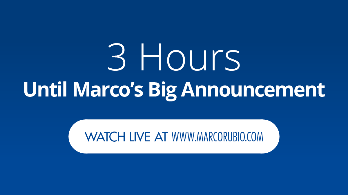 twitter:marcorubio twitterde op maandag 13-04-2015 om 20:57:28It's almost time. #newamericancentury http://t.co/HkLOiSxsVK reageer retweet