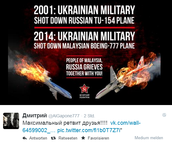 Het bericht werd rond het tijdstip dat het Maleisische vliegtuig van de radar verdween getwitterd.