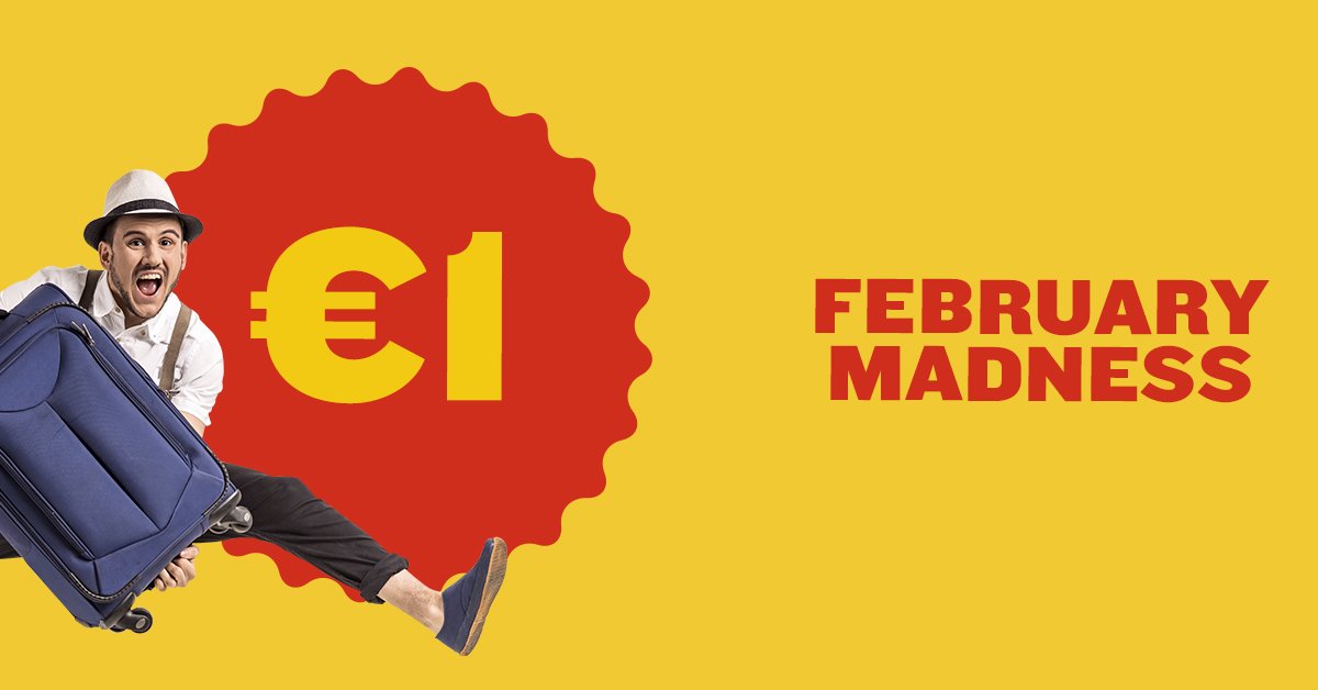twitter:Ryanair twitterde op woensdag 03-02-2016 om 12:52:26UNBEATABLE 1¤ sale now on https://t.co/cgLkPq5oJZ HURRY! Book your #February #getaway before midnight Thursday! reageer retweet