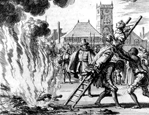 Best een humane manier om iemand op de brandstapel te knikkeren. Meestal wachtte men tot het vuur heel langzaam dichterbij kwam. Wat ben je mild geworden.