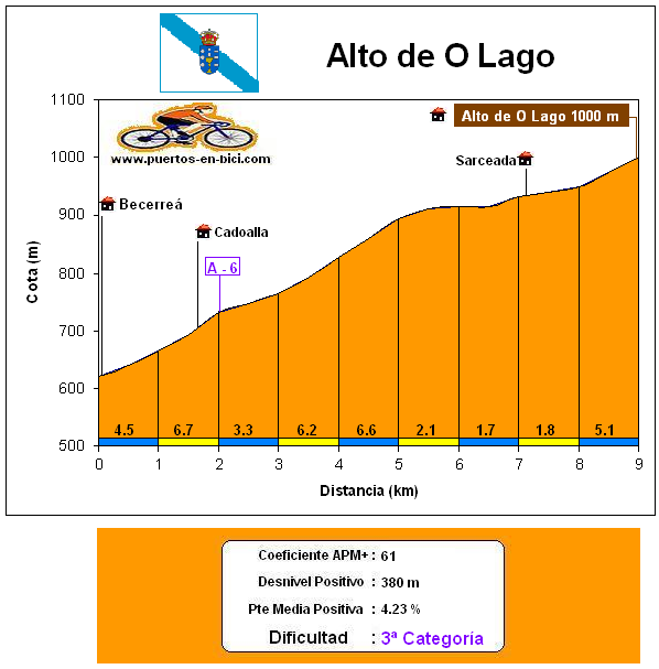 Boven op de Alto de Vilaesteva zijn we al dik over de helft van de rit. 109 van de 185 kilometer gedaan. Vanaf nu is er eigenlijk geen meter vlak meer bij en nog vier beklimmingen. Na Vilesteva tien kilometer afdaling om dan meteen te beginnen aan de Alto de O Lago. De O Lago is vrij lang, maar niet echt zwaar. Acht kilometer lang, vier procent gemiddeld. Deze finale is bijna een exacte kopie van de rit in de Vuelta van 2012 naar de Puerto de Ancares. Alle klimmen die vandaag in de finale langskomen zaten er toen ook in. Enige verschil is dat men nu een andere kant van de Ancares beklimt, die een tikkeltje zwaarder is.