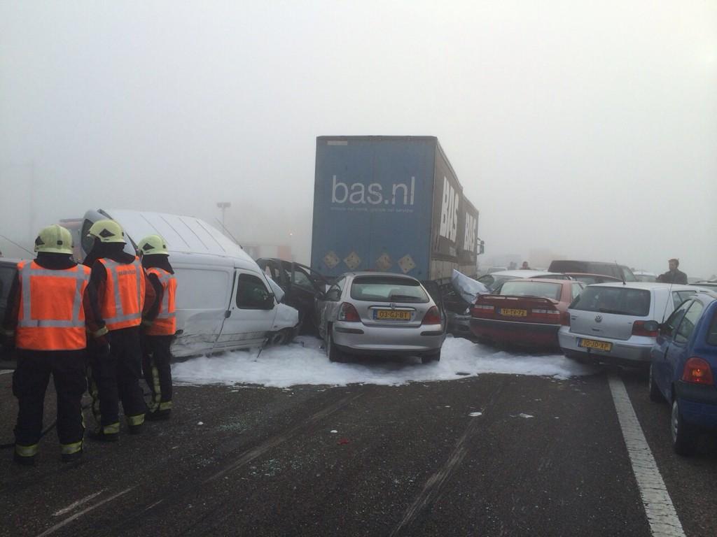 Het zijn dus allemaal verschillende plekken... niet 1 kettingbotsing.. tja zo kan ik ook wel 150 auto's tellen..