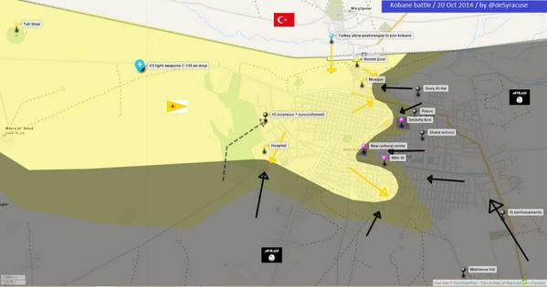 twitter:deSyracuse twitterde op maandag 20-10-2014 om 15:26:42NEW MAP #Kobane battle 20 Oct 2014 - Reinforcements arrived (bigger : https://t.co/Ba8UUqizmm) http://t.co/mbZEYZRDWN reageer retweet