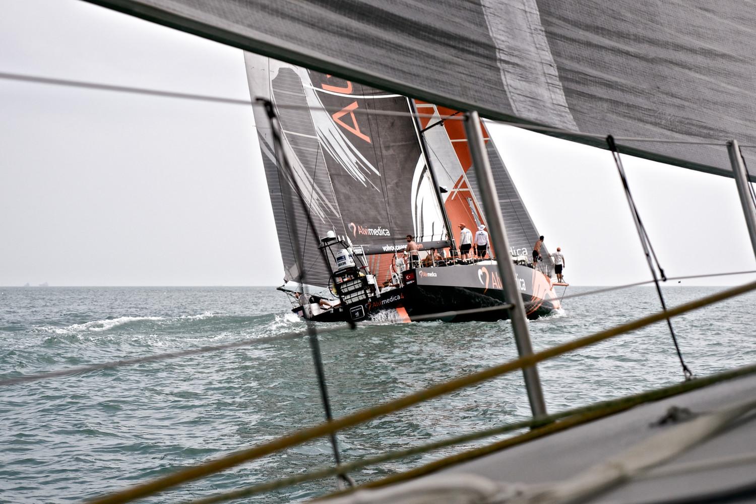 25 dagen zeilen en dan kunnen de eerste twee boten elkaar zien vlak bij de finish