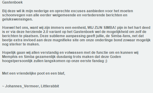 Je kan communiceren met enkele gebanden via het gastenboek.quote: