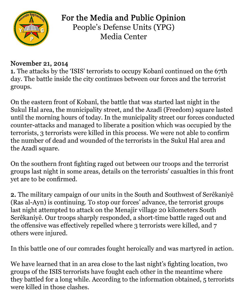 Die berichten van Rami verklaren wel die hoop berichten van YPG die zeggen continu tientallen zo niet honderden ISIS strijders te hebben vermoord