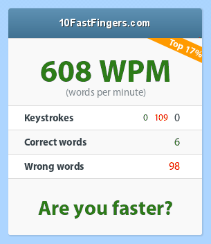 Nee, ik typ normaal een stuk trager, is erg vermoeiend om op zo'n tempo te typen.
