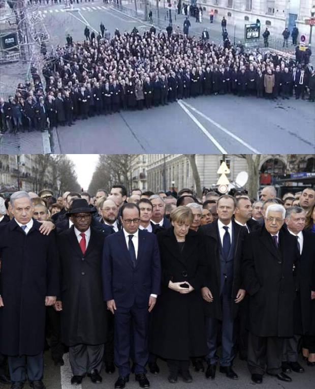 • politieke leiders die verbroederd meelopen in de Je Suis Charlie-tocht - GeenStijl