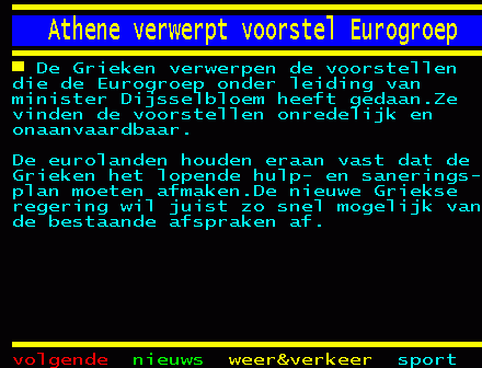 quote:In Griekenland zijn zondag duizenden mensen de straat opgegaan om hun steun te betuigen aan de nieuwe regering van premier Tsipras, die maandag in Brussel onderhandelt over de verlenging van het steunprogramma aan Griekenland.