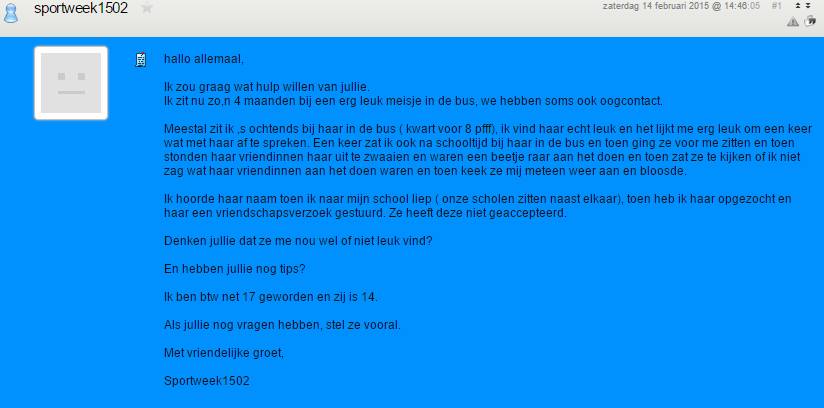 Als een eckte FOK!ker dus.quote:Op zaterdag 14 februari 2015 15:09 schreef BozeHaas het volgende: