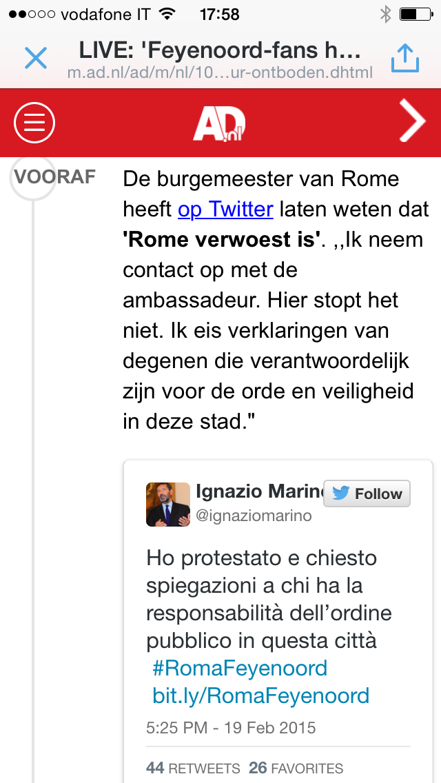 Die van Corriere is niet meer live? Is nu nl ook aan het schemeren daar dus zuo kunnen..quote:Op donderdag 19 februari 2015 18:10 schreef Rabieluh het volgende: