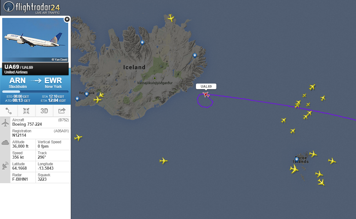 Om 23:36 uur landt de A340 weer op dezelfde baan en taxit het naar de gate.